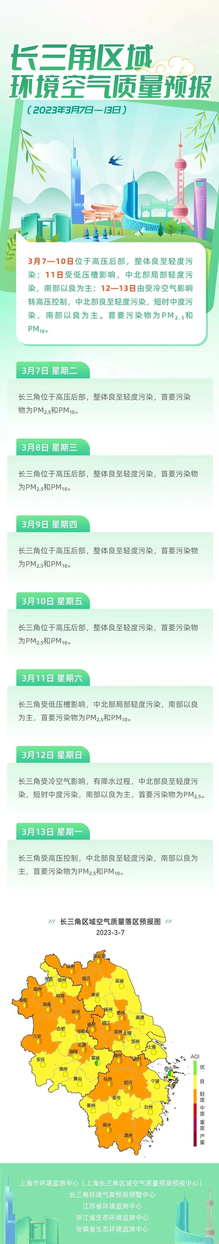 目前,长三角三省一市的生态环境部门共同推进长三角区域空气质量预报结果发布,并明确预报会商及发布工作机制。